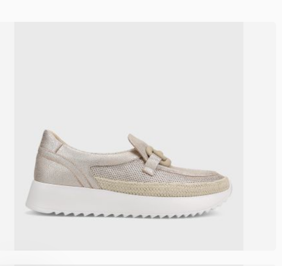 Loafer-style athleisure shoe. Tonal metal bit. Braided rope trim. Ultra-padded removable insole. 1.5 inch treaded rubber sneaker sole.