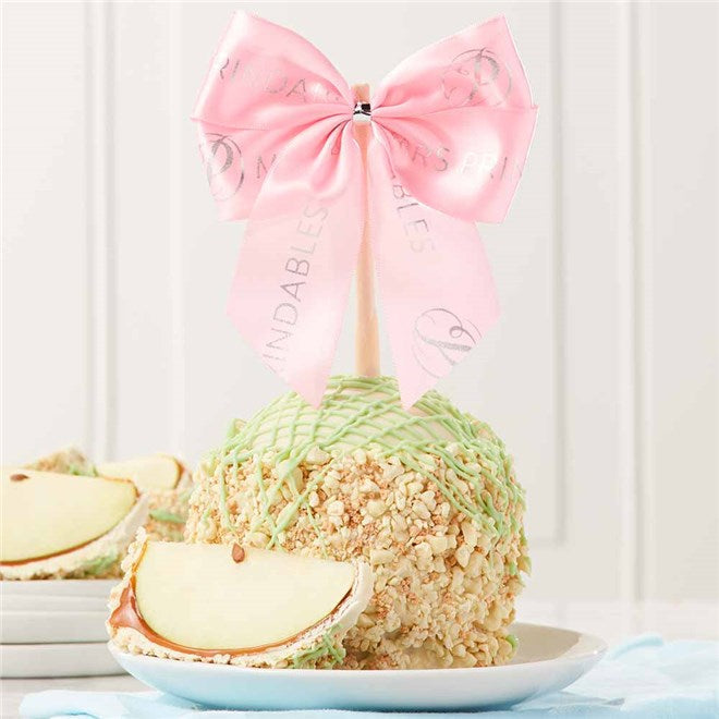 A crisp, juicy apple is dipped in smooth, buttery caramel and coated in rich white chocolate, then rolled in a zesty blend of Key lime pieces and crunchy graham cracker crumble. Each apple is finished with a playful green drizzle and a sweet spring pink ribbon, adding a charming touch perfect for Easter and seasonal celebrations. This limited-time treat is a fresh and festive way to welcome spring—don't miss your chance to indulge!