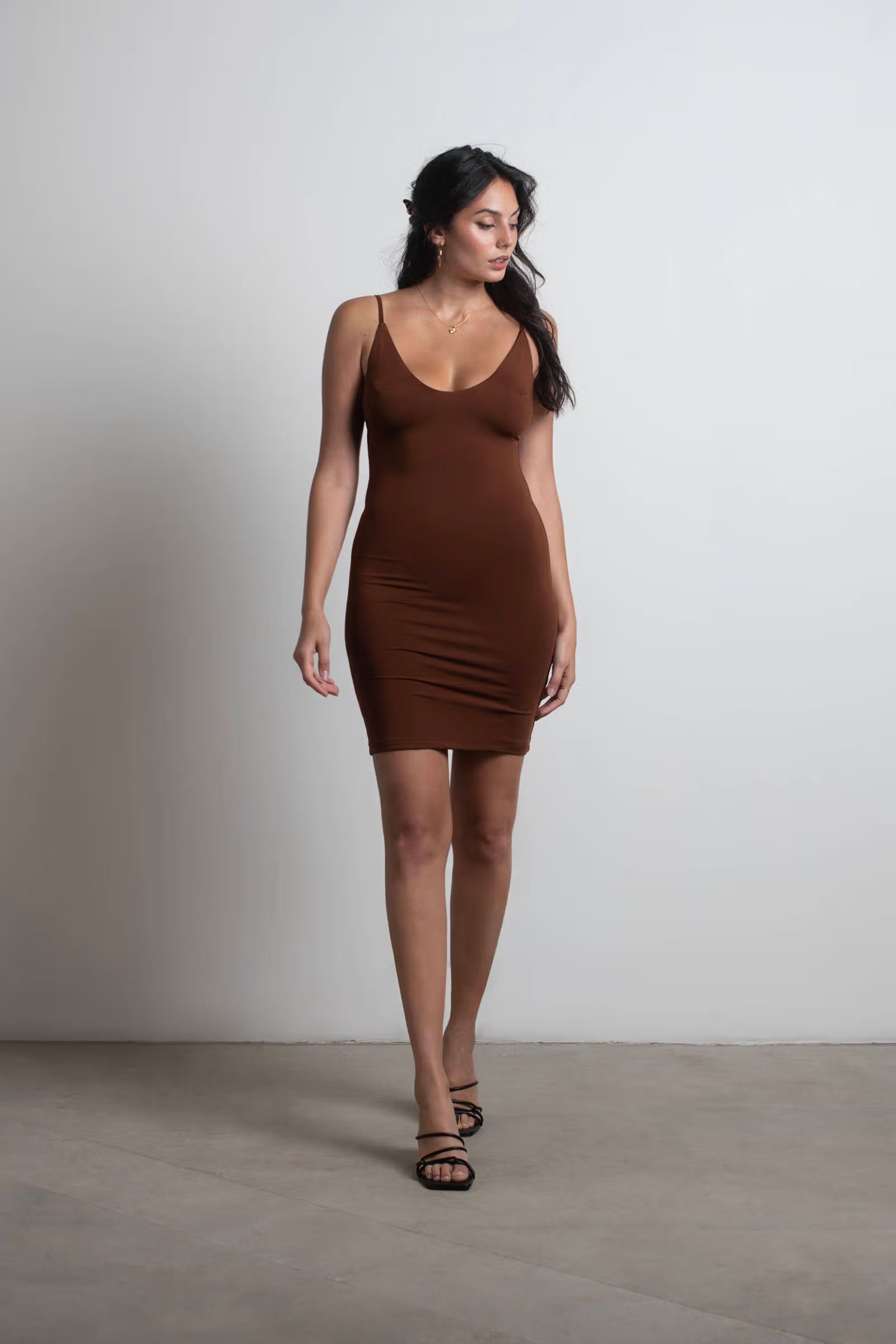Say hello to your new go-to outfit with the See Ya Later Bodycon Mini Dress in Brown! This dress combines playful flair with a sleek silhouette, making it perfect for day-to-night adventures. The stretchy fabric hugs your curves in all the right places, ensuring a confident fit, while the eye-catching color brings a pop of fun to your wardrobe. Either way, you'll be ready to turn heads and make unforgettable memories!