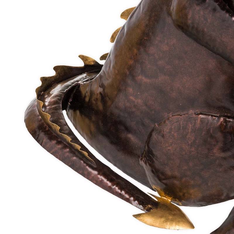 Our Metal Reading Dragon Sculpture is one literary lizard, indeed! We can't tell if this handsome metal dragon is reading about the adventures of other famous dragons, or a barbecue cookbook on how to prepare roasted Knights in Armor. Either way, for his book's sake, we hope he doesn't sneeze!